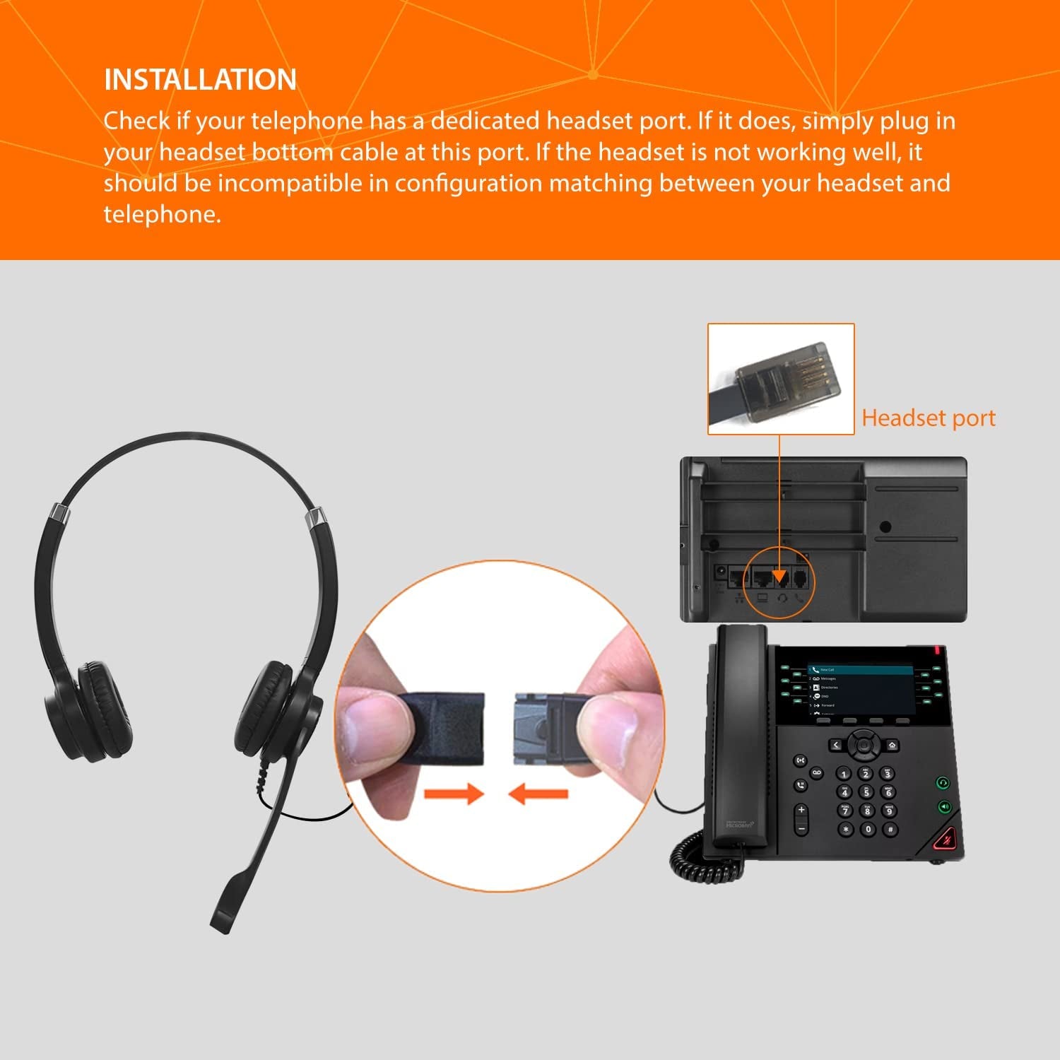 IPD IPH-255 Optimo-X Duo Ear Noise Canceling,Corded Headset for Call Center,Office&Landline Phones with U10P-S Bottom Cable W RJ9 Jack Cable Works with Yealink,Snom,Lg &Other IP Phones