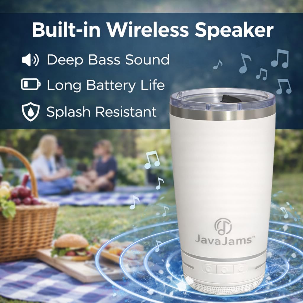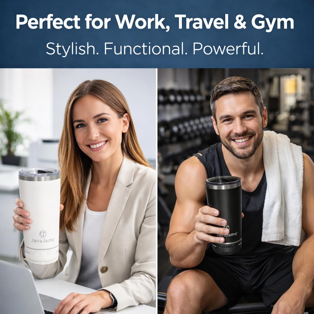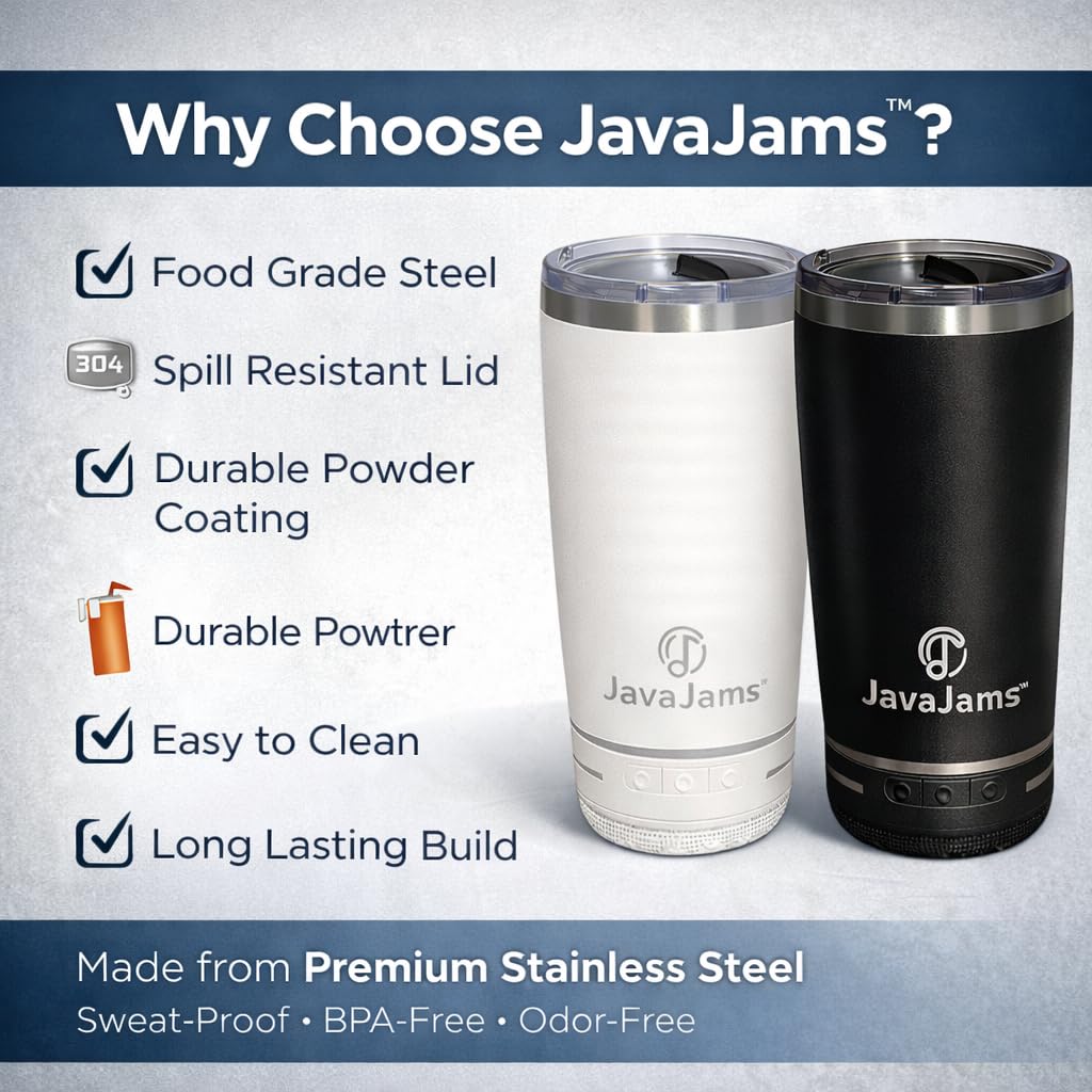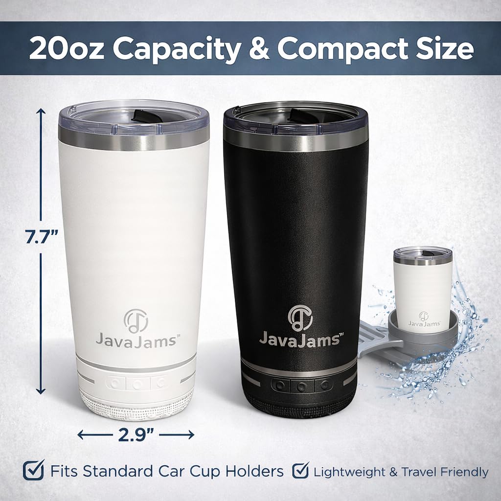 🎁 Stylish Gift for Coffee & Music Lovers – Perfect for Any Occasion: The JavaJams 20 oz Bluetooth tumbler combines practicality, tech, and style in one. Whether you’re shopping for birthdays, holidays, or Christmas gifts for women and men, this coffee tumbler with speaker is the perfect present for travelers and music enthusiasts.