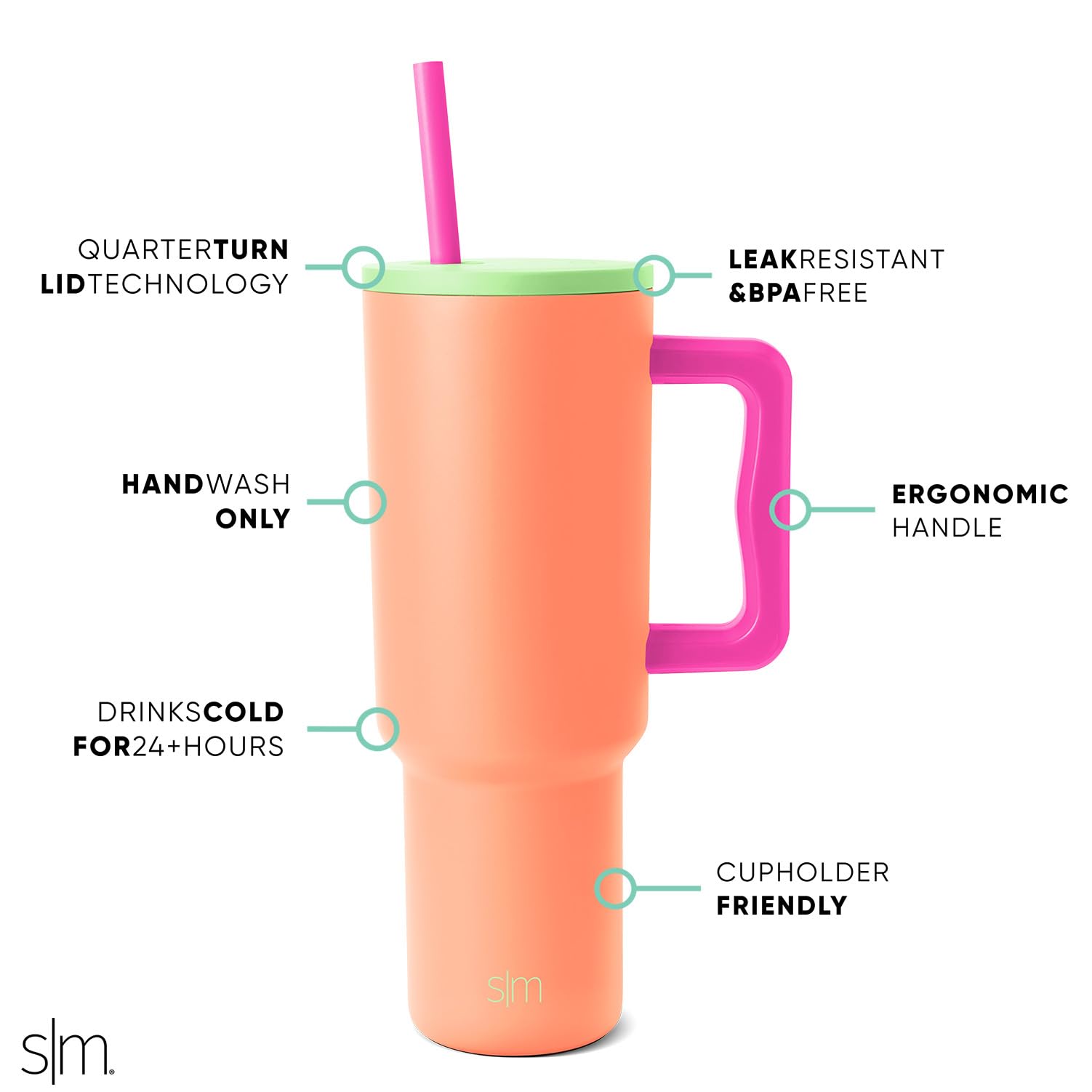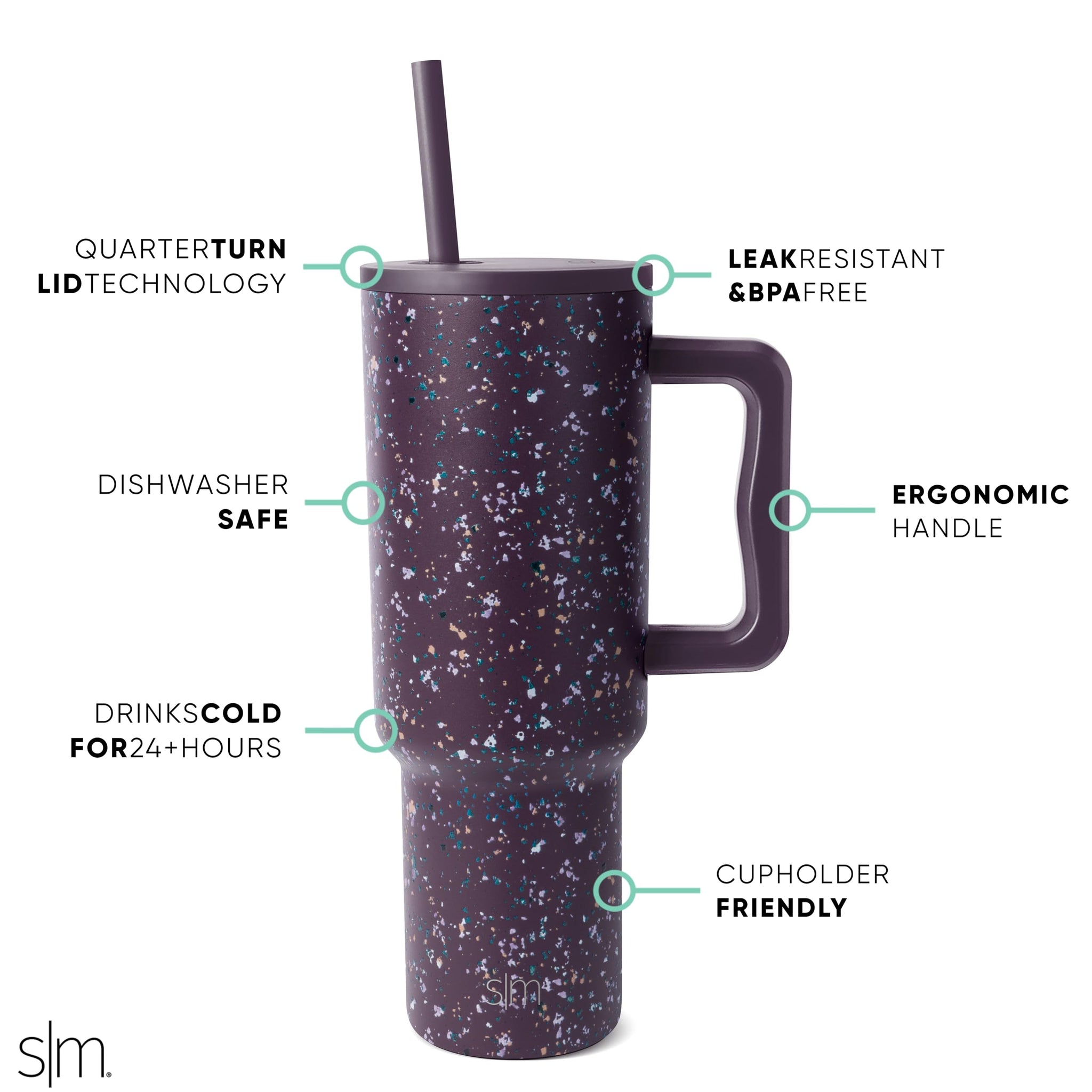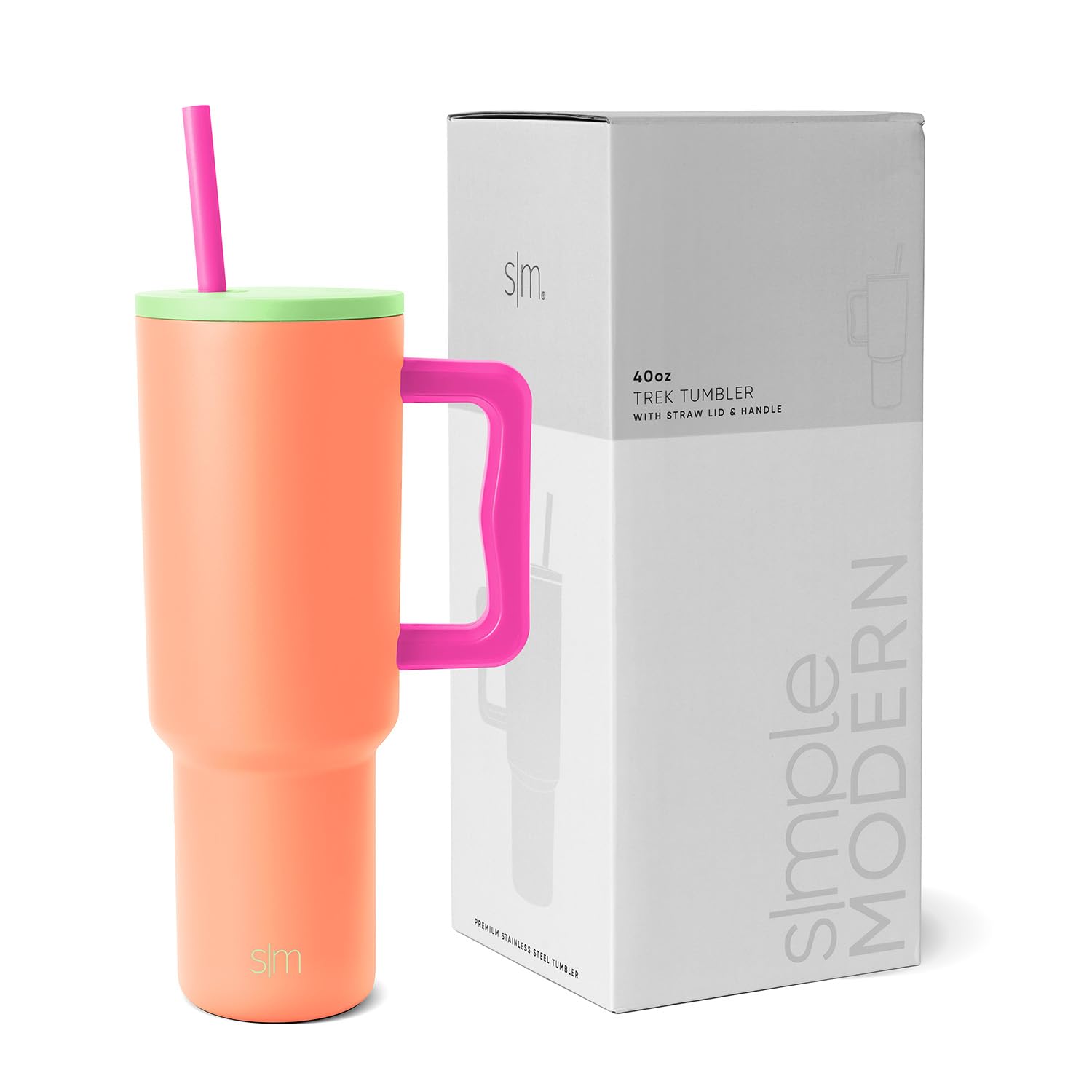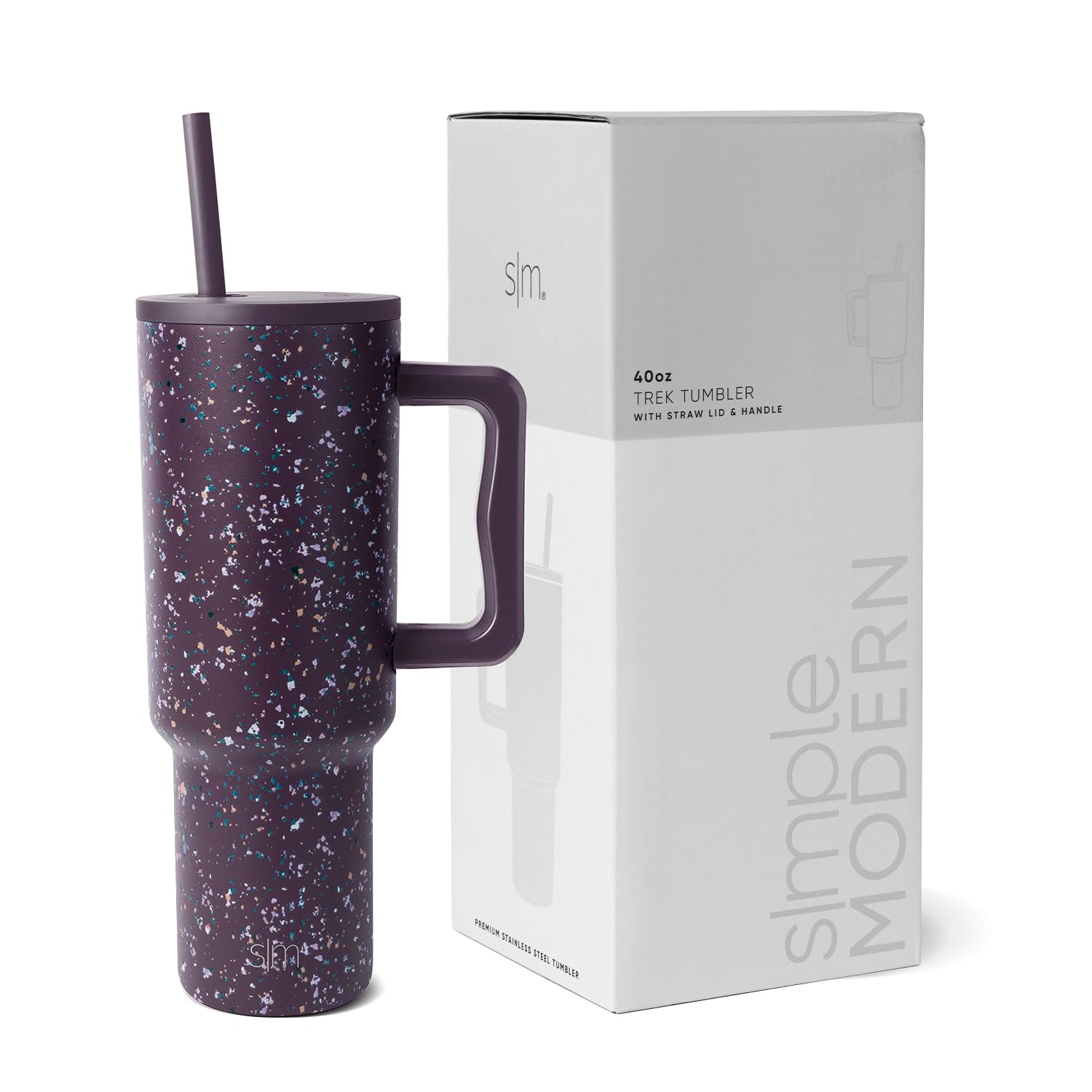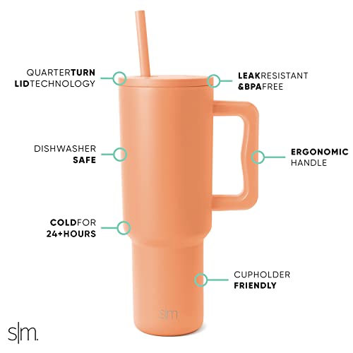 The Simple Modern Trek Tumbler is double walled and vacuum insulated to keep your drink hot or cold for hours. The cup is outfitted with an ergonomic handle, that is aesthetically designed for comfort. It comes with a straw lid and two straws so you can enjoy your favorite beverage on the go. The straw lid is four-way threaded to allow four different straw placements for your drinking hand preference. The Trek is made from 18/8 stainless steel and fits standard cupholders, and with a variety of color options, you can get an Emotional Support Water Bottle for whatever outfit or activity the day entails -- Take Us With You.