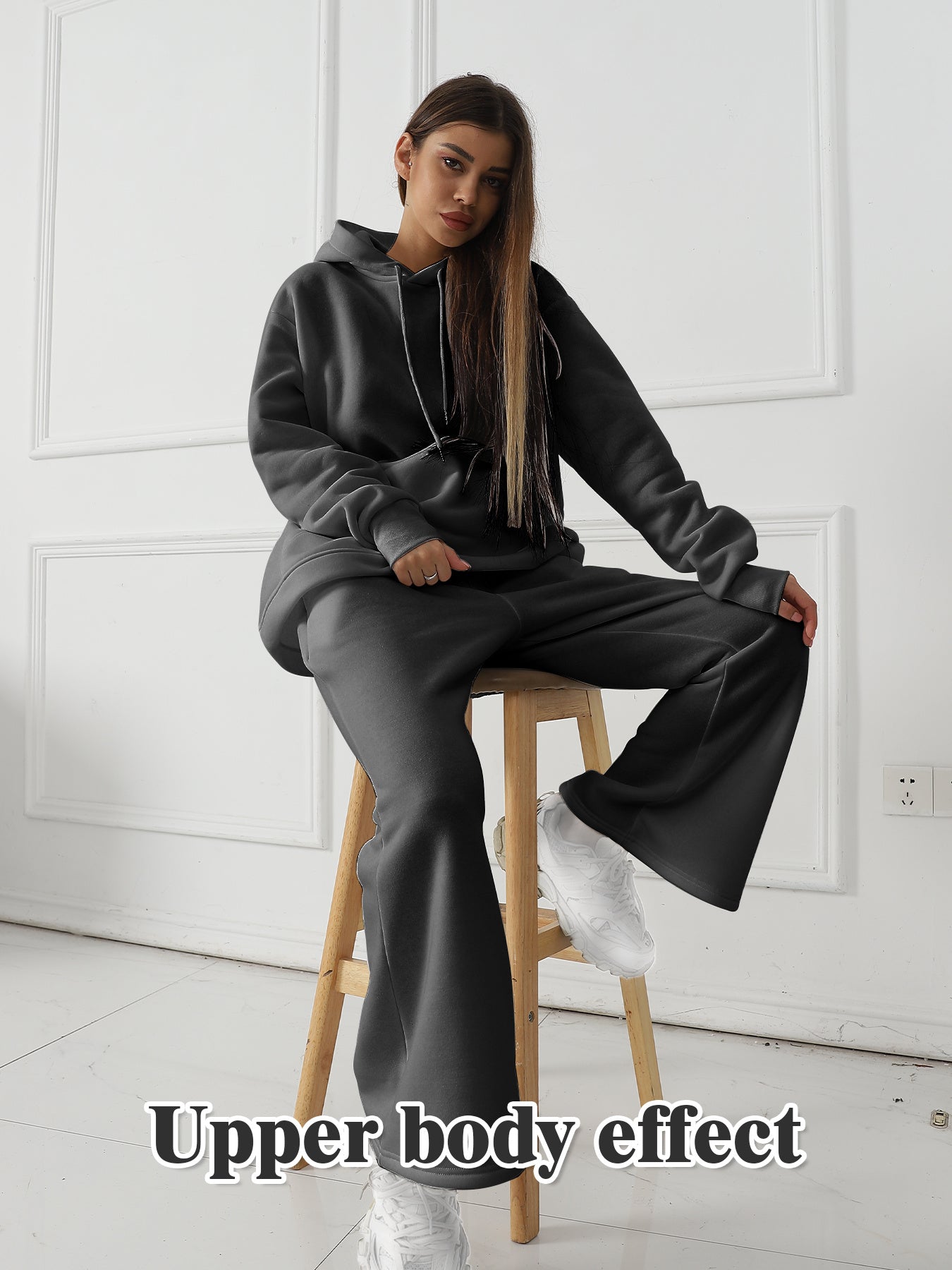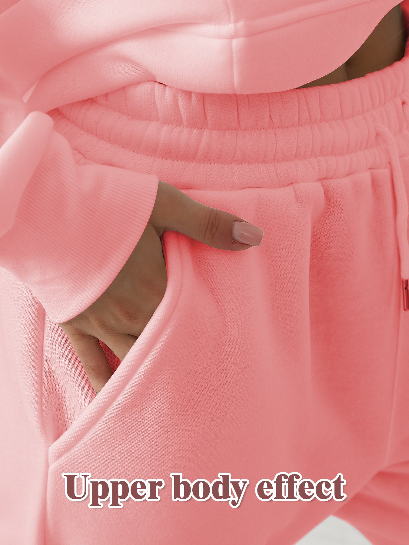 Women's Fashionable Casual Solid Color Long Sleeved Sweatshirt Set