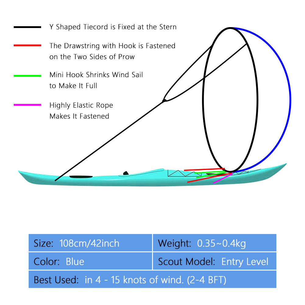 1、Refined with high-quality materials, strong and durable. 2、Compact design, easy to set up and rapid deployment. The transparent window allows you to view the content behind Sail. 3、It can effectively reduce the ultraviolet radiation and protect you from the scorching sun. 4、Easy to use, hold the clip to keep the kayak moving forward, just put it down to stop. 5. Suitable for kayaks, canoes, inflatable equipment, boats, etc. 5、Kayak sails are made of durable and strong high‑quality materials. Easy to set up and rapid deployment. Belts and clips allow you to control the movement. It also protects you from ultraviolet radiation and is compatible with kayaks, canoes, inflatable boats, etc. What are you waiting for?